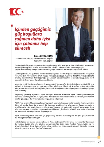 için çabamız hep sürecek. Geleceğin bugünden çok daha iyi olacağına duyduğumuz inançla çalışmaya