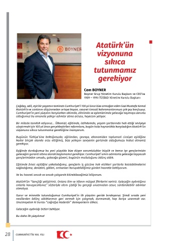 ulaştırmak için 100 yıl önce gerçekleştirilen reformlara, bugün hala hayranlıkla karşıladığım Atatürk’ün
