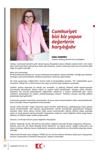 Kısacası; Cumhuriyet bizi biz yapan değerlerin karşılığıdır.