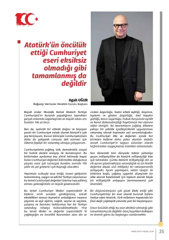 şey borçluyum. Bunun bilinciyle Cumhuriyetimizin Bu Cumhuriyet ilke ve değerleri içinde her