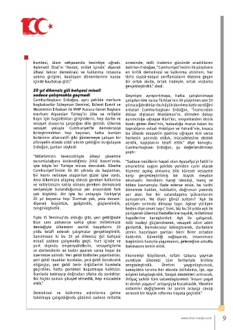 desteğiyle ülkemizin asırlık kayıplarını 20 gerilettik. Demokrasiyi kökleştirerek, darbelere