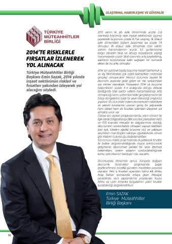 Başkanı Emin Sazak, 2014 yılında gerçekçi olmayacaktır. Mevcut durumda siyaset ile