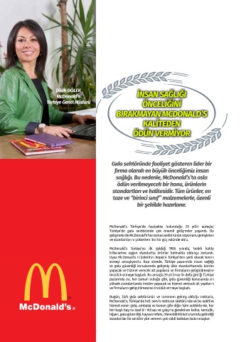 sağlığı. Bu nedenle, McDonald’s’ta asla