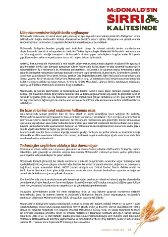 da ürün sağlayabilir niteliğe kavuşturdu. McDonald’s’a üretim yapan tedarikçilerin bugüne kadar Türkiye’de