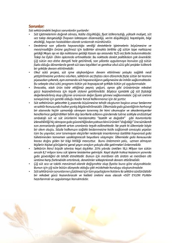 Süt sektöründeki başlıca sorunlardır şunlardır: