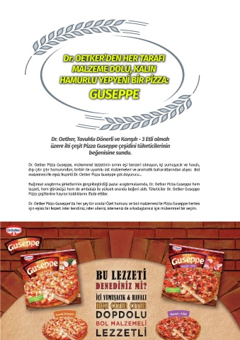malzemesi ile eşsiz lezzetli Dr. Oetker Pizza Guseppe çok doyurucu...