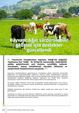 Yapılmasına Dair Tebliğ” ile Türkiye’de hayvancılığın sürdürülebilir