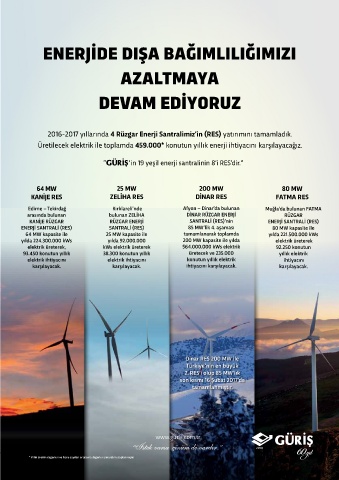 2016-2017 yıllarında 4 Rüzgar Enerji Santralimiz’in (RES) yatırımını tamamladık.