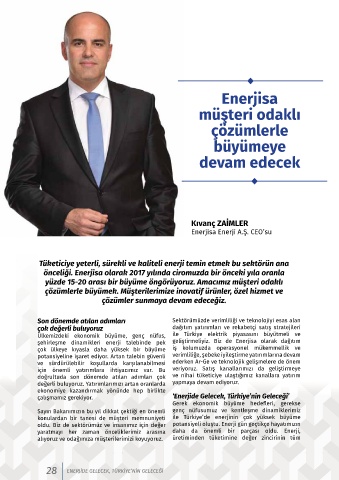 28 ENERJİDE GELE CEK, TÜRKİYE’NİN GELE CE Ğİ
