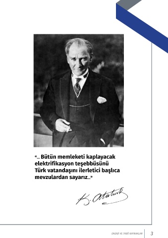« ... Bütün memleketi kaplayacak elektrifikasyon teşebbüsünü Türk vatandaşını ilerletici başlıca mevzulardan sayarız... » ENERJİ VE TABİİ KAYNAKLAR 3