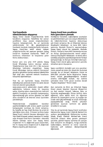 her 10. Sepaş Enerji müşterisi 25 TL değerinde kullanıldığını, önemini ve enerji tasarrufu