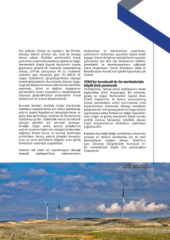Mehmet ACARLA Bununla beraber, özellikle rüzgâr enerjisinde kazandırılması anlamında oldukça sevindirici
