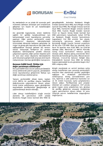 Borusan EnBW Enerji olarak sadece yenilenebilir Rüzgâr enerjisinde en verimli tesislere sahip