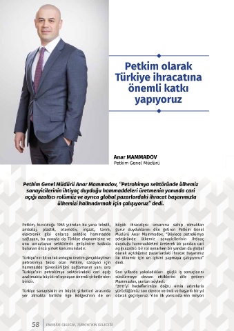 elektronik gibi onlarca sektöre hammadde Müdürü Anar Mammadov, “Böylece petrokimya