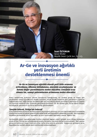 60 ENERJİDE GELE CEK, TÜRKİYE’NİN GELE CE Ğİ