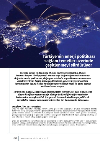 88 ENERJİDE GELECEK, TÜRKİYE’NİN GELECEĞİ