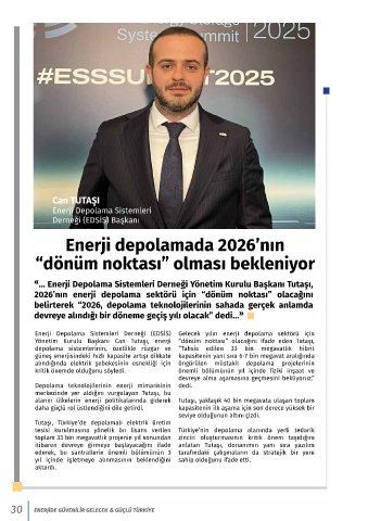 « ... Enerji Depolama Sistemleri Derneği Yönetim Kurulu Başkanı Tutaşı,