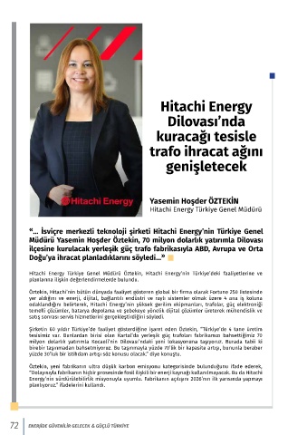 « ... İsviçre merkezli teknoloji şirketi Hitachi Energy’nin Türkiye Genel