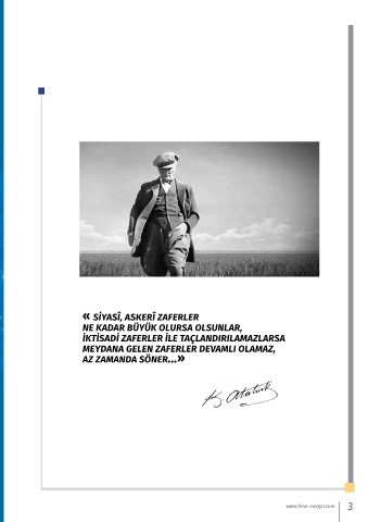 « SIYASÎ, ASKERÎ ZAFERLER NE KADAR BÜYÜK OLURSA OLSUNLAR, IKTISADI ZAFERLER ILE TAÇLANDIRILAMAZLARSA MEYDANA GELEN ZAFERLER DEVAMLI OLAMAZ, AZ ZAMANDA SÖNER...» www.time-medya.com 3 www.time-medya.com 103