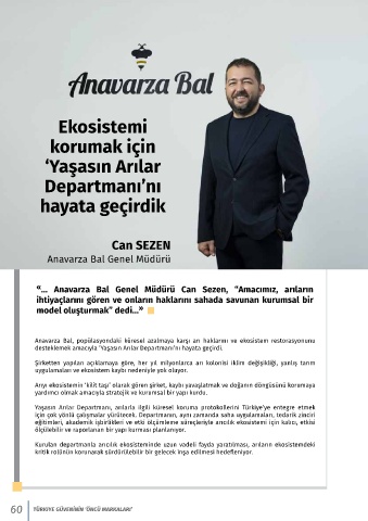 « ... Anavarza Bal Genel Müdürü Can Sezen, “Amacımız, arıların