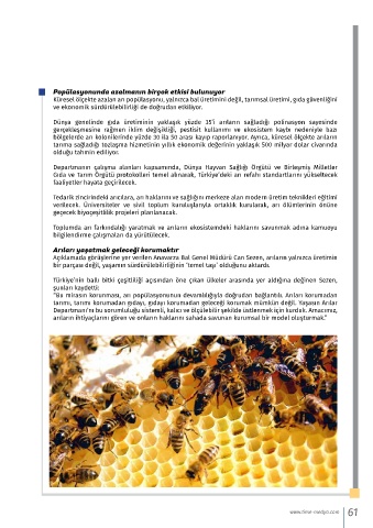 verilecek. Üniversiteler ve sivil toplum kuruluşlarıyla ortaklık kurularak, arı ölümlerinin önüne