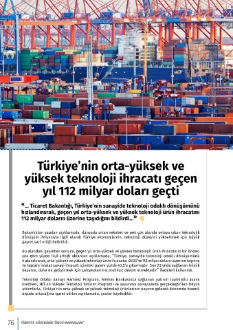 hızlandırarak, orta-yüksek ve yüksek teknoloji ürün ihracatını 2025’te 112 milyar doların üzerine taşımış