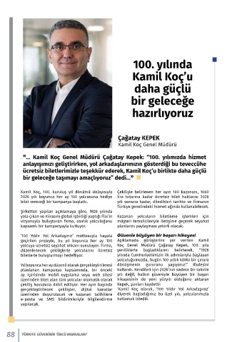 « ... Kamil Koç Genel Müdürü Çağatay Kepek: “100. yılımızda hizmet