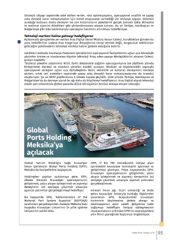 aşamalı yatırımlar gerçekleştirmeyi hedefliyor. Küresel liman ağı, ticari uzmanlığı ve önde