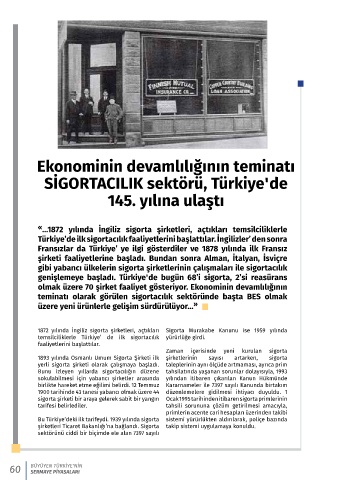« ...1872 yılında İngiliz sigorta şirketleri, açtıkları temsilciliklerle