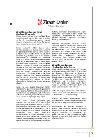 risklerini piyasadaki yatırımcılara dağıtmak, Ziraat Katılım Bankası