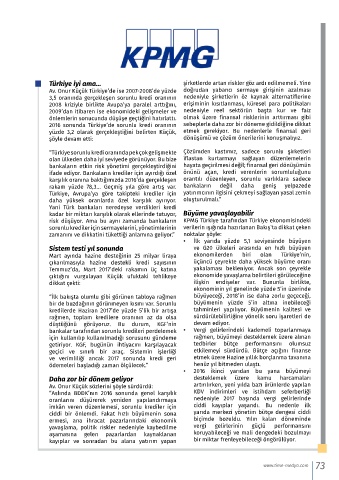 risk düşüyor. Ama bu aynı zamanda bankaların KPMG Türkiye tarafından Türkiye ekonomisindeki
