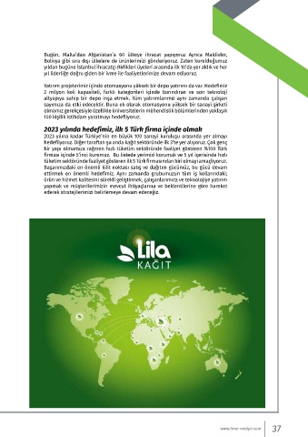 hedefliyoruz. Diğer taraftan şu anda kağıt sektöründe ilk 3’te yer alıyoruz. Çok genç