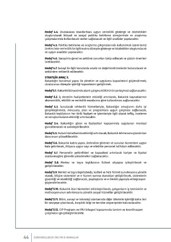 Hedef 4.4. Uluslararası standartlara uygun verimlilik gösterge ve istatistikleri