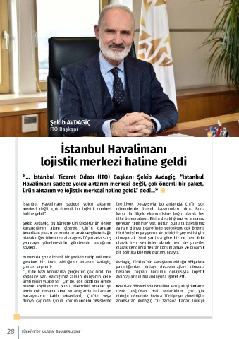 ürün aktarım ve lojistik merkezi haline geldi.” dedi... »