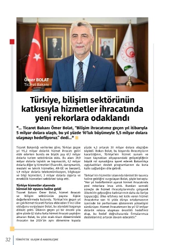 « ... Ticaret Bakanı Ömer Bolat, “Bilişim ihracatımız geçen yıl itibarıyla