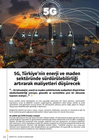 « ... 5G teknolojisi, enerji ve maden sektörlerinde maliyetleri düşürürken