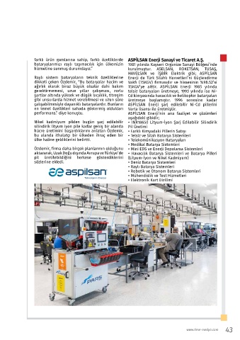 farklı ürün gamlarına sahip, farklı özelliklerde ASPİLSAN Enerji Sanayi ve Ticaret A.Ş.