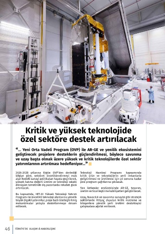 ve uzay başta olmak üzere yüksek ve kritik teknolojilerde özel sektör