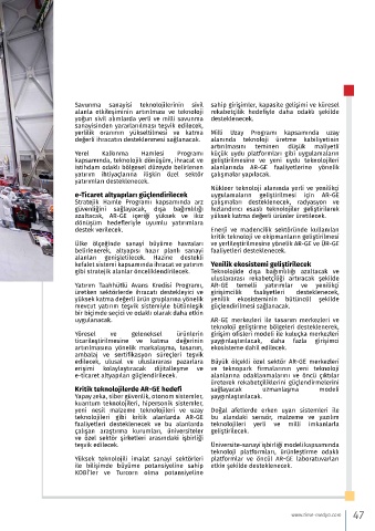 teknolojileri gibi kritik alanlarda AR-GE bu alandaki sensör, malzeme ve yazılım