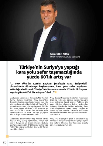 Uluslararası Nakliyeciler Derneği Yönetim Kurulu Aras, 2010’da Suriye’de çıkan iç savaştan dolayı