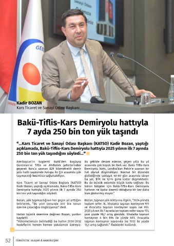 Kadir Bozan, yaptığı açıklamada, Bakü-Tiflis-Kars bütün bölgeler için Bakü-Tiflis-Kars Demiryolu