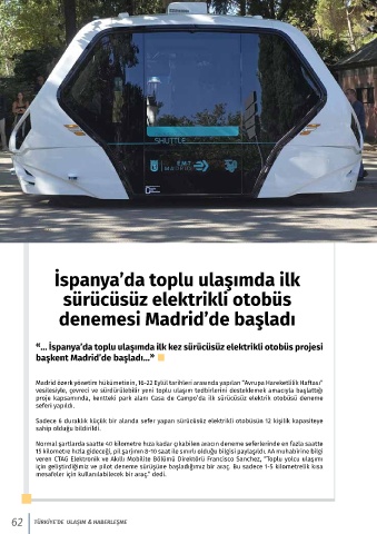 « ... İspanya’da toplu ulaşımda ilk kez sürücüsüz elektrikli otobüs projesi