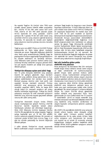 arasında yer alıyor. Togg gibi doğuştan elektrikli karbonsuzlaşma önemli bir rol oynuyor. Bu
