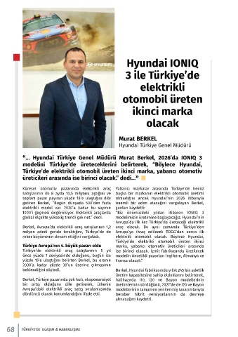 « ... Hyundai Türkiye Genel Müdürü Murat Berkel, 2026’da IONIQ 3
