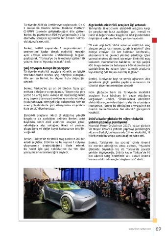 noktası olduğunu vurgulayarak, “Geçen yıla göre Hem globalde hem de Türkiye’de elektrikli