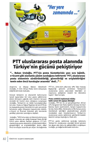 « ... Bakan Uraloğlu, PTT’nin posta hizmetlerinin yanı sıra lojistik,