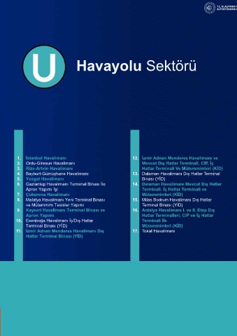 7. Konya Karaman HT Hattı 17. Ankara YHT Gar Bakım Kompleksi 6. Gaziantep Havalimanı Terminal Binası İle 14. Dalaman Havalimanı Mevcut Dış Hatlar